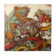 Azulejo De Cerâmica Cena asiática com cão e dragão do foo