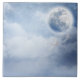 Azulejo cerâmico com um céu de fantasia mágico com nuvens azuis e uma lua grande e bonita. 2 cisnes brancas voando juntas.