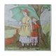 Este é o azulejo de abril de Wedgwood do mês pintado de cores e mostra um garoto e uma garota sob um guarda-chuva grande durante um "chá" de abril. Uma lembrança de excelente para o aniversário de abril e outras ocasiões. Reproduzido a partir de uma série de azulejos de cor manual, de cerca de 1885, representando os meses do ano, por Josiah Wedgwood & Sons. Também faz um azulejo de ênfase de excelente, peça para exibição, parede ou azulejo de backsplash ou lareira de fundo. Disponível em azulejos de 4,5 e 6 polegadas, bem como em outros itens. Temos dois conjuntos completos - este em cor de cheio e outro em azul e branco.