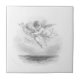 Anjos charmosos de cerebro em preto e branco. Imagem em forma de placa gráfica de tipo Vintage de anjos voadores de cerejas sobre mares tempestuosos com um pequeno barco pode ser vista a distância e outros anjos das nuvens