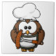 Este desenho do clipart de uma coruja que guardara um cachorro quente. A coruja é circularmente com um corpo marrom e branco com um chapéu do cozinheiro chefe, um avental e uma forquilha do CHURRASCO com um cachorro quente nele.