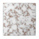 Este azulejo cerâmico apresenta uma textura moderna de mármore falso em ouro rosa, cinza e branco.