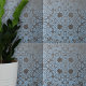 Esse azulejo cerâmico apresenta um design intrincado e simétrico que é uma fusão harmoniosa de padrões florais e geométricos. Folhas e flores deliciosas estão elegantemente entrelaçadas, criando uma experiência visual cativante. O design é colocado contra um fundo de cinza sem som, com padrões azuis vibrantes fornecendo um contraste impressionante. Essa design complexa, porém equilibrada, oferece interesse visual sem esmagar os sentidos. Cada canto do azulejo espelha o oposto, contribuindo para a simetria e equilíbrio geral do design. Esse azulejo, com sua tradicional estética artesanal, faria uma adição marcante a qualquer espaço.