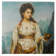 Abade, rica e detalhada pintura do século 19 mostrando uma mulher graciosa em traje tradicional, segurando uma xícara com elegância polida. Os têxteis ornamentados, o pano de fundo montanhoso e as técnicas de petróleo clássico fazem deste trabalho de arte um eterno de expressão cultural e artística. Perfeito para amantes de retratos antigos, arte clássica e decoração histórica. Ideal para impressões de parede e sotaques elegantes em casa.
