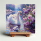 Azulejo De Cerâmica Cisne branco e Cygnet com Rosas roxos