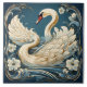 Azulejo De Cerâmica Cisne e flores, fundo azul