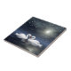 Dois cisnes em uma bela lua da meia-noite e um cenário de luz estelar com seus pescoços formando um azulejo de cerâmica romântico em forma de coração