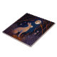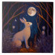 Um coelho aprecia a floresta sob a luz da lua. O estilo combina elementos da Arte Deco e da arte popular. As cores são principalmente azuis e laranja. É uma colaboração entre mim e a IA.