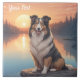 Collie Tri Colorido sentado junto a um lago ao pôr do sol. Adicione esta imagem a outros produtos. Adicione seu próprio texto também. Muitos animais de estimação na minha loja.