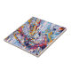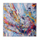 A dynamic explosion of vibrant colors and swirling patterns creates a sense of movement and energy. The composition is filled with a variety of shapes and layers, evoking a feeling of chaos and creativity.