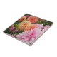 Azulejo cerâmico maravilhoso com a foto de um jardim de flores coloridas, laranja e cor-de-rosa Dahlia. Um design floral adorável! Selecione o tamanho do seu azulejo. Faz uma trivet de cozinha excelente!