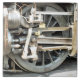 Um design fotográfico da roda de um trem a vapor.