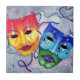 Máscaras de Teatro Comédia e Tragédia, desenhadas e desenhadas à mão por Sandra Gale. Este desenho original é colorido e branco e parece excelente em qualquer produto. Pode ser dado como presente para o ator que você conhece, ou como uma adorável decoração colorida. Rostos felizes e tristes com cores coordenadas representam o teatro e a atuação. Parece excelente em todos os itens e é apropriado para todas as idades.