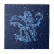 Azulejo do símbolo do zoídiaco de Virgem em azul-prata-suave, sobreposto com as estrelas da constelação, contra fundo de céu estrelado em azul-da-meia-noite profundo