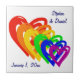 Este arco-íris de corações amorosos é o presente perfeito para o casal especial no dia do seu casamento, como presente/anúncio de noivado, ou presente de aniversário entre vocês. Personalize o texto para ajustado dos seus nomes e data.