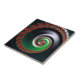Este trabalho apresenta um padrão fractal robusto e complexo com uma estrutura espiral que parece estender-se infinitamente para dentro. As cores primárias são vermelho vívido e verde esbranquiçado, contrastando com um fundo escuro e profundo. Ao longo do caminho da espiral, formas frtais intrincadas e menores repetem-se, criando uma sensação de profundidade e movimento. Os elementos fractais vermelhos parecem formas orgânicas, quase como flores florescentes ou folhas enroladas. Os tons verdes gradualmente transitam para as brancas prateadas mais perto do centro, adicionando um efeito brilhante. No geral, a imagem evoca um sentimento de infinita complexidade e energia dinâmica.
