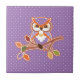 " É outono! Agarre esta coruja bonito das bolinhas para sua mesa do feriado. O design inclui uma grande coruja das bolinhas do lilac que senta-se em um ramo esboçado em branco e em alaranjado. O fundo neste azulejo adorável é lilac com bolinhas brancas."