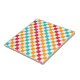 Alternating red, orange, teal, and white squares create a colorful, vibrant checkerboard pattern, conveying an energetic and playful tone.