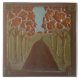 This unique decorative tile is designed for a Craftsman home or for people who love Arts and Crafts Bungalow homes. The image is a road with trees on both sides going into the distance. The copper sun is setting and the foliage is copper as well. Use it on your fireplace or kitchen backsplash. These tiles comes from an original handmade tile from Oregon tile maker Fay Jones Day.