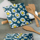 Padrão elegante, na moda e sofisticado com flores brancas margaridas sobre fundo azul marinho. Presente moderno e moderno, perfeito para o amante floral de design na sua vida.