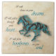 Ilumine a sua casa com este único Azulejo Inspiracional de decoração de cavalos "Um tipo"! Ele apresenta uma Silhueta Turquesa Galopante em Turquesa, Preta e Dourada em um fundo de Tan Sandstone e a citação inspiradora..."Eu dançarei em seus sonhos" ~ Eu irei galopar pelo seu coração" ~ Eu vou plantar capotas na sua alma"!