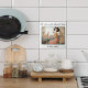 Azulejo de cerâmica retrô com uma mulher apaixonada pelo chá, saboreando seu chá, dois gatos próximos, cortinas de rendas, e um ditado charmoso e atrevido para entusiastas do chá.