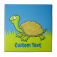 Ilustração de desenho animado de uma tartaruga feliz. Texto personalizado.