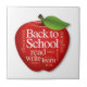 Volte à escola com estilo com uma grande maçã vermelha para o professor. Leia, escreva, aprenda, descubra, explore, pense, raciocine, questione e estude.