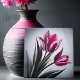 Um belo esboço digital de tulipas cor-de-rosa, feito em rosa e preto. Esta arte foi imaginada com IA.