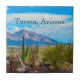 Tucson, azulejo de cerâmica Arizona, com uma foto de um deserto no sudoeste da tarde antes de uma monção de verão. Esta foto mostra uma vista da borda oeste das Montanhas Catalinas. Com simples letras negras, você pode adicionar seu próprio texto. Uma natureza divertida inspirou um item para sua decoração do sudoeste.