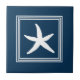 Design aquático com decoração de estrelas-do-mar em quadrados distribuídos sobre fundo azul
