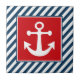 Design com temas náuticos com decoração de âncora em quadrado sobre fundo listrado a azul e a branco