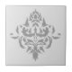 Adicione um sotaque romântico de azulejo francês a qualquer sala com este elegante elemento de arte damask de solteiro. Fundo de cinza claro com um ícone de amortecimento de cinza escura preenchendo o centro da design.