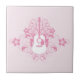 Design cor-de-rosa com uma guitarra no centro, espirais e flores à volta. Muito feminino, muito legal.