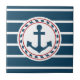 Design náutico com decoração em forma de âncora em fundo listrado a azul e a branco