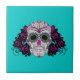 Azulejo De Cerâmica Dia do crânio inoperante do açúcar com rosas