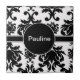 azulejo cerâmico monograma Damask com padrão floral preto e branco e espaço no qual você pode adicionar seu nome ou inicial. Use isto como um trivit ou dê a alguém especial como um presente personalizado.