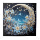 Flores azuis e brancas e a lua. Esse azulejo cerâmico é ideal para uma cintura invertida, uma arte de parede ou como uma peça de arte isolada.