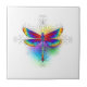 Brilho, arco-íris, libélula poligonal sobre fundo branco, pintada com aquarela.