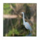 Um Egret Branco Excelente parado num rio raso a perseguir um peixe. O reflexo do pássaro é visto nas águas calmas.