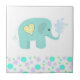 Um elefante giro borrifando água no porta-malas. Uma borda de pontos coloridos em vários tamanhos.