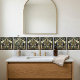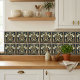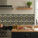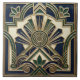 Immerse yourself in the opulent elegance of the Art Deco era with this stunning ceramic tile. Featuring a radiant sunburst motif, this design is rendered in a sophisticated palette of deep navy blue, rich emerald green, and lustrous gold accents, all set against a creamy ivory background. The intricate geometric patterns and symmetrical arrangement evoke the glamour and luxury of the 1920s and 30s, making it a perfect statement piece for any interior. This tile is ideal for adding a touch of vintage charm and artistic flair to kitchens, bathrooms, or accent walls, bringing a timeless sophistication to your home decor. Its intricate details and luxurious finish ensure it will be a conversation starter for years to come.