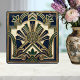 Azulejo De Cerâmica Emerald Navy Gold Art Deco Sun Rays Geometric