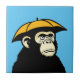 Imagem engraçada de um chimpanzé vestindo um chapéu guarda-chuva.