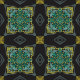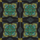 Fundo preto com um padrão requintado de cinzas, amarelo, verde e azul claro. Uma design única e original desenhada pela Mary.