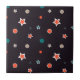 Padrão de Natal perfeito e brilhante, estrelas coloridas e flocos de neve sobre fundo preto.