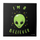 Um gráfico de alienígena "Eu sou uma Crença" desenhado por Criativo mostra uma alienígena sorridente e verde cercada por luas e estrelas! Isso faz um presente excelente para a família, amigos ou um presente para você mesmo! Este gráfico engraçado é um excelente adicional ao estilo de qualquer um. Criativo é um criador líder e licenciador de designs e propriedades originais e tradicionais. ©LCT Creative. Licença de bCreative.com