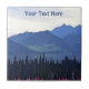 Montanhas azuis, água azul do lago, árvores verdes escuras, algas rosa e encharcadas. Uma representação do verão no extremo norte. Mosquitos não incluídos. Personalize adicionando seu próprio texto.