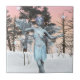 Renderização digital 3D de uma bela fada de gelo num fundo de floresta de inverno