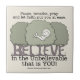 O Little Boy é visto em uma pose relaxada no alto das árvores que ilustram a citação acima que nos lembra de pausar, respirar, rezar e deixar a fé te acalmar. As formas dos troncos destas árvores soletram a palavra "BELIEVE" e a citação, "no Inacreditável que é VOCÊ!" abaixo que completa o conhecido ditado de David A. Carrizales. O desenho é de Christie Black.